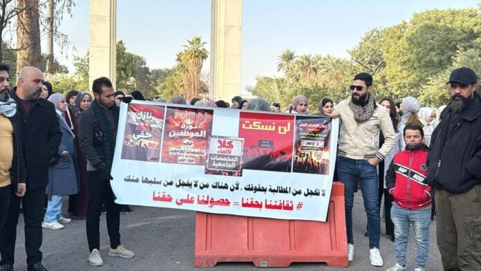 إذ لا تزال التظاهرات مستمرة في بغداد أمام وزارة التعليم العالي، فيما واصل موظفو جامعات ذي قار وميسان والأنبار ونينوى والبصرة تحركاتهم الاحتجاجية، شملت إضراباً عن العمل ووقفات داخل الجامعات ومديريات التربية، مع تلويح بالتصعيد عبر اعتصامات مفتوحة وإغلاق المباني في حال عدم الاستجابة لمطالبهم.