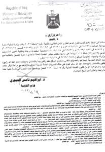 وأظهرت وثيقة صادرة عن الوزارة اطلعت عليها “إيشان”، أن “الوزارة أصدرت الأوامر الوزارية المرقمة 46) و(ت47) والخاصة بتعيينالأوائل ضمن المشمولين بتعيينات مجلس الخدمة العامة الاتحادي”.