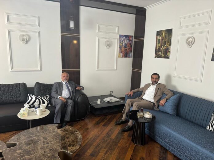 الجبوري أجلس إلى جانبه أيضاً، وزير المالية الأسبق رافع العيساوي، السياسي الآخر الذي يُعد من خصوم الحلبوسي، وأرفق صورته بتغريدة قال فيها: “بحثنا أزمة رئاسة مجلس النواب وضرورة الإسراع في حلها واسترداد حق المكون في تولي المنصب، وكانت وجهات نظرنا متقاربة جداً”.