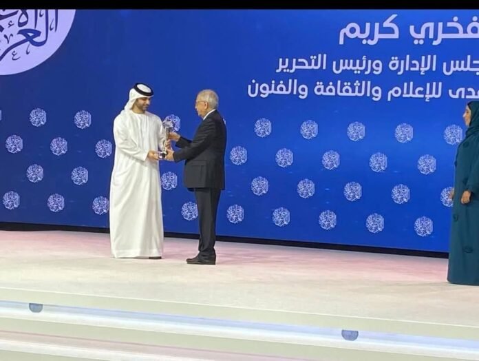 كرّمت قمة الإعلام العربي في دورتها الـ24، التي احتضنتها دبي، الإعلامي العراقي فخري كريم، رئيس مجلس الإدارة ورئيس تحرير مؤسسة المدى للإعلام والثقافة والفنون، بمنحه جائزة شخصية العام الإعلامية، حيث تسلم كريم الجائزة من الشيخ منصور بن محمد بن راشد آل مكتوم، رئيس اللجنة الأولمبية الوطنية، وذلك تقديراً لمسيرته الطويلة وإسهاماته في إثراء المشهد الإعلامي العربي.