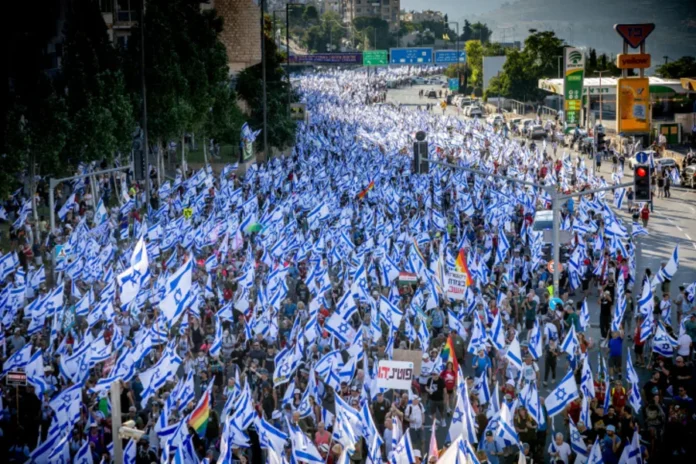 شارك آلاف الإسرائيلين في احتجاج مناهض للحكومة وأغلقوا المدخل الرئيسي لمدينة القدس متجهين نحو مقر إقامة رئيس الوزراء بنيامين نتنياهو.