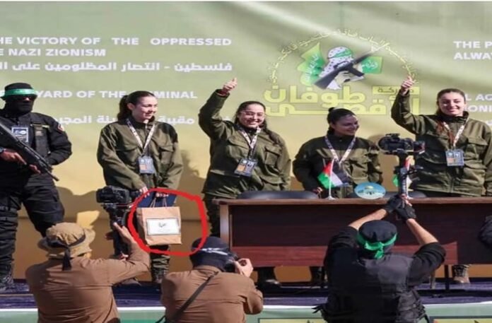 ومنذ بداية صفقة تبادل الاسرى، فإن حماس تسلم لكل إسرائيلي مفرج عنه أكياس بنية اللون تحمل شعار المقاومة الإسلامية.
