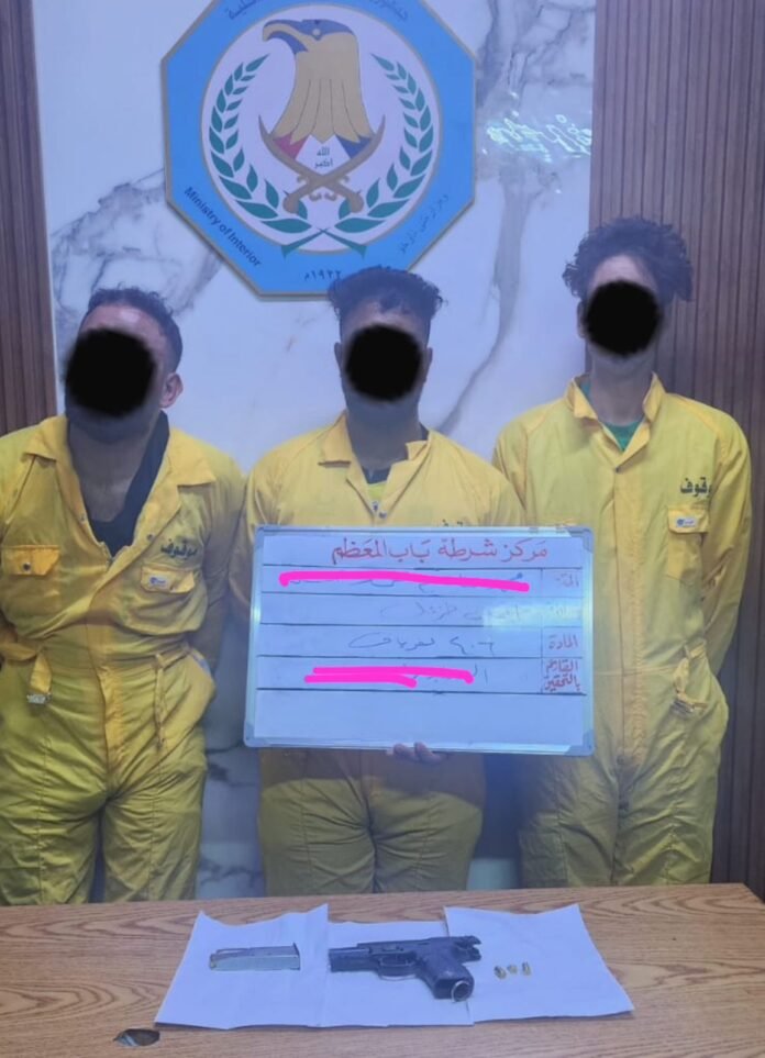 وأضافت “كما أنهم أصابوا شخصاً آخر بذات الإطلاقات، ليلقى عليهم القبض ويصادر سلاحهم، وذلك بعد مطاردتهم في بغداد”.