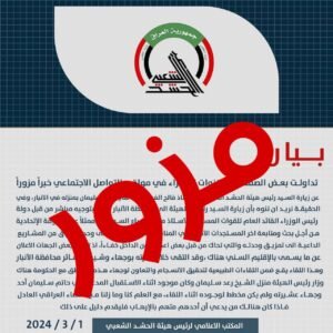 إلا أن البيان “تزلزل” كما حدث مع صورة “حضن الفياض وعلي السليمان”، ومع نشره في مجموعات الواتس آب، والتأكيد ضمنياً على أنه “بيان رسمي”، نفت منصّات مقربة من الحشد مضمون البيان، وقالت عنه إنه “مزوّر”، فيما تواصلت منصة “إيشان” مع المكتب الإعلامي للفياض، الذي أجاب، أن “الكتاب مزوّر، ونفيه بشكل رسمي لا يستحق”.