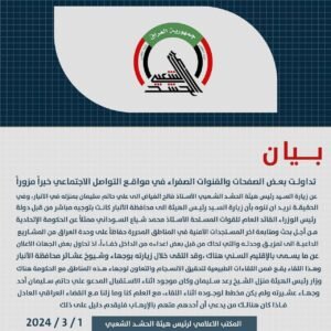 وعلى الجانب المقابل، نشرت قناة “العهد” التابعة لعصائب أهل الحق، أن “البيان مزوّر”، وفي نفس الوقت، نشرت أخبارا عاجلة، عن مضامين البيان الذي جاء فيه سبب زيارة الفياض إلى الأنبار، ولقائه بعلي حاتم السليمان.