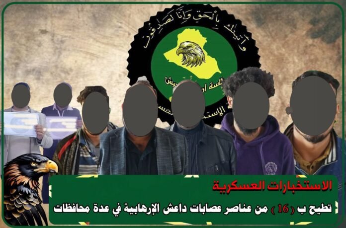 أعلنت مديرية الاستخبارات العسكرية، اليوم الثلاثاء، عن الإطاحة بـ16 عنصراً بعصابات داعش الإرهابية في عدة محافظات.