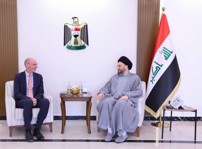 وقال الحكيم في بيان تلقته “إيشان”، “التقينا السفير البريطاني لدى العراق ستيفن هيتشن وبحثنا تطورات العلاقات الثنائية بين البلدين وسبل تعزيزها بما يخدم مصالح الجميع ويحفظ سيادة البلاد”.