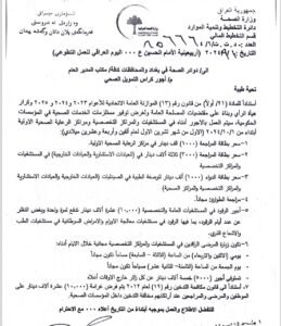 وحصلت “إيشان” على الوثيقة الجديدة، التي حددت فيها تسعيرات الخدمات الطبية والصحية الجديدة، وكما موضح في الوثيقة أدناه: