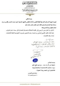 وقال الصدر، في معرض رد على سؤال وجه له من أنصاره بخصوص تحديث سجل الناخبين، بالقول: “ذلك أمر لا بد منه، بل هو نافع لكم، سواء دخلتم الانتخابات أم قاطعتموها، فالتفتوا إلى ذلك رجاء أكيداً”.