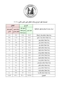 وبلغت الإحصائية أكثر من 7 آلاف حالة في عموم العراق، في حين كانت حالات الزواج قرابة 31 ألف حالة.
