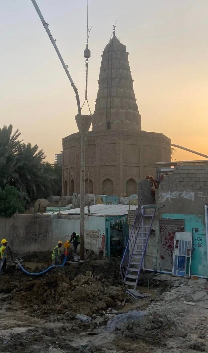 وقال المهندس المعماري، زيد عصام عبر جداريته على منصة فيسوك، أن حفريات عميقة، وكميات مياه كبيرة، تضخ مباشرة على الباب الخارجي لقبة زمرد خاتون العباسية، على بعد 15 مترا من بدنها.