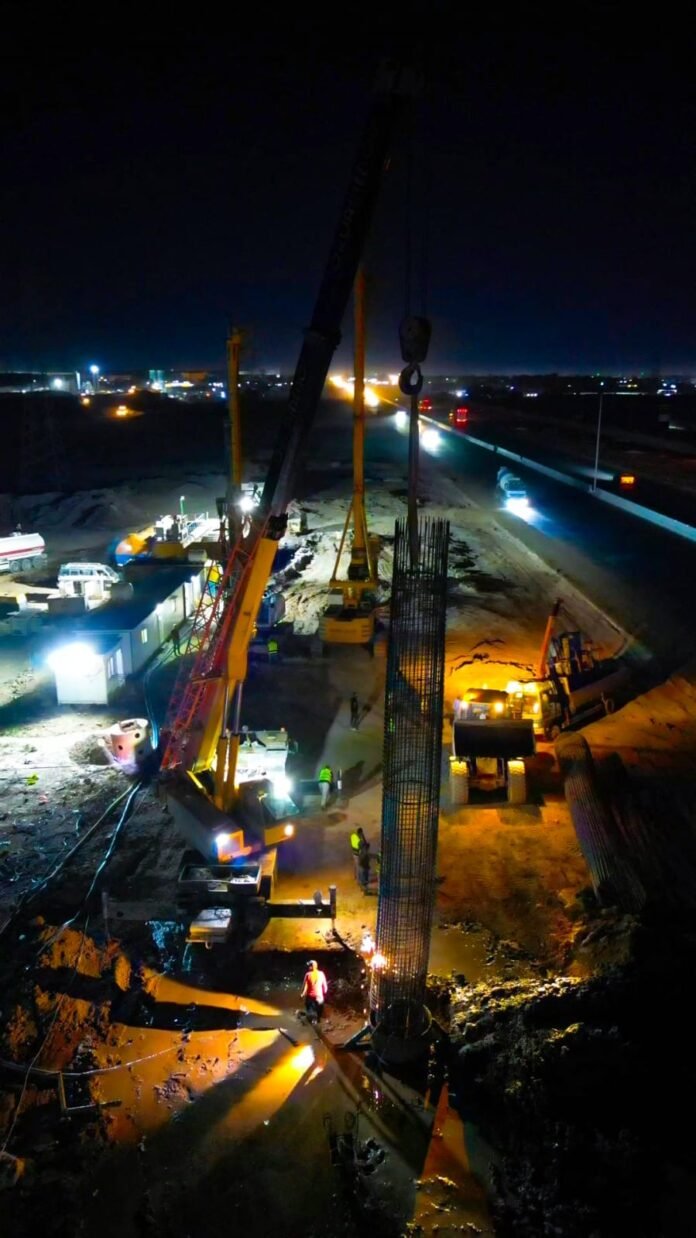 وأشار البيان إلى “أن الأعمال تتضمن التسوية والتحضير لفرش الكونكريت لآخر كيلومتر لممر الإياب في المنطقة الرابطة بجسر المصابيح، بالإضافة إلى أعمال تصنيع ونصب الحاجز الكونكريتي الوسطي والجانبي على طول الطريق بمسافة (33) كيلومتراً، كذلك المباشرة بنصب أعمدة الإنارة الوسطية وعلى طول الطريق أيضاً”، لافتاً إلى “استمرار العمل بانسيابية تامة بهدف انجاز المشروع بالسرعة الممكنة ووفق المواصفات المعتمدة والمطلوبة”.