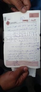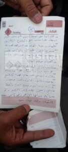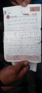 وأظهرت صور حصلت عليها “إيشان”، وصية تركها العقيد المنتحر ذكر فيها أسباب انتحاره، مشيراً إلى تعرضه لورطة بسبب أشخاص وضباط.