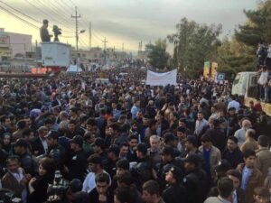 خرج العشرات من معلمي كردستان، اليوم السبت، بتظاهرة مساندة لقرار المحكمة الاتحادية العليا، بشأن توطين رواتب موظفي الإقليم وربطها ببغداد.