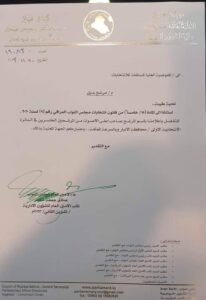 وجهت الأمانة العام لمجلس النواب، اليوم الاثنين، كتاباً إلى المفوضية العليا المستقلة للانتخابات بشأن اختيار بديل محمد الحلبوسي.