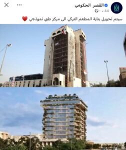 وكتب القصر الحكومي تدوينة، قال فيها: “سيتم تحويل بناية المطعم التركي إلى مركز طبي نموذجي”.