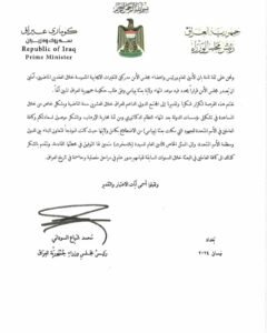 وقال السوداني، في وثائق مرسلة للأمين العام للأمم المتحدة أنطونيو غوتيرش، وردت لمنصة “إيشان”، وجاء فيها: