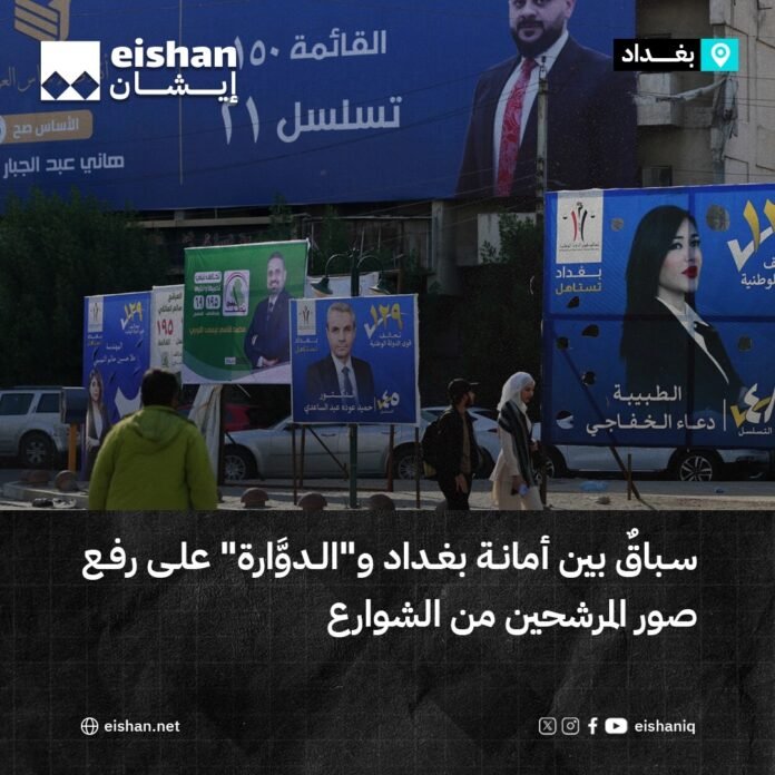 دعايات المرشحين وصورهم التي امتلأت بغداد بها، بدأت تختفي شيئاً فشيئاً، من شوارع العاصمة التي شبع أهلها من الوعود الفضفاضة على مدار عشرين عاماً الماضية.