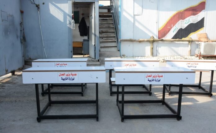 وأضاف البيان أن “معامل وورش التأهيل الإصلاحية في السجن شارك فيه (250) نزيلاً، لإنتاج (12000) رحلة مدرسية بجودة عالية ووفقاً للمواصفات المعتمدة في المدارس”، مشيراً إلى أنه “تم توزيعها على محافظات البصرة والناصرية والديوانية”.