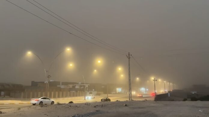 ووصلت صور إلى منصة “إيشان”، تظهر دخول العاصفة الترابية إلى أجواء بغداد قادمة من مناطق الجنوب.