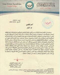 وأثارت وثيقة رسمية صادرة عن نقابة الفنانين العراقيين، نشرها المخرج علي فاضل، جدلاً واسعًا بعد أن كشفت عن إدانة الفنانة سارة البحراني بتهمة سوء السلوك والتجاوز وتضليل الرأي العام، وصدور إنذار نهائي بحقها، ينص على سحب عضويتها في حال تكرار هذه المخالفات.