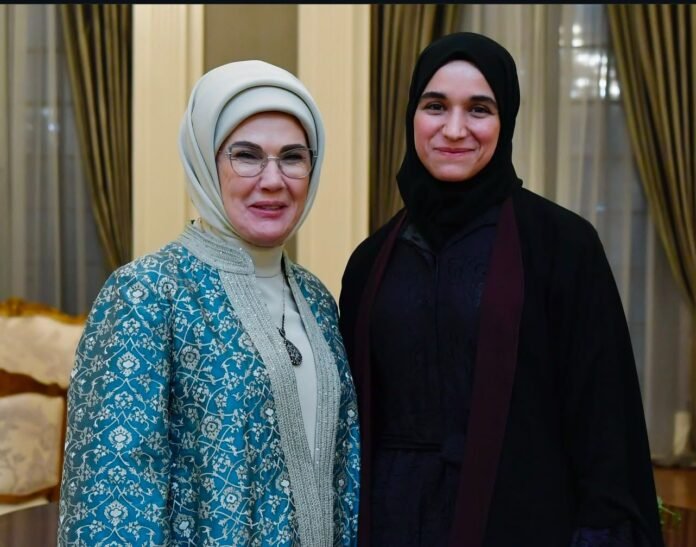 ونشرت أمينة أردوغان عبر حسابها على منصة “انستغرام”، صورة لها مع زوجة الشرع وكتبت باللغة التركية مما معناه “لقد سعدت جداً باستضافة السيدة لطيفة الدروبي، زوجة الرئيس السوري، التي قامت بزيارة رسمية لبلادنا اليوم”.