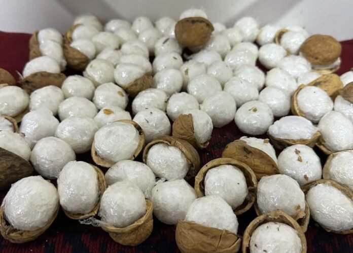 وأشار إلى أن “القوة عثرت على كميات من مادة الكريستال المخدرة مخبأة داخل حبات الجوز”.