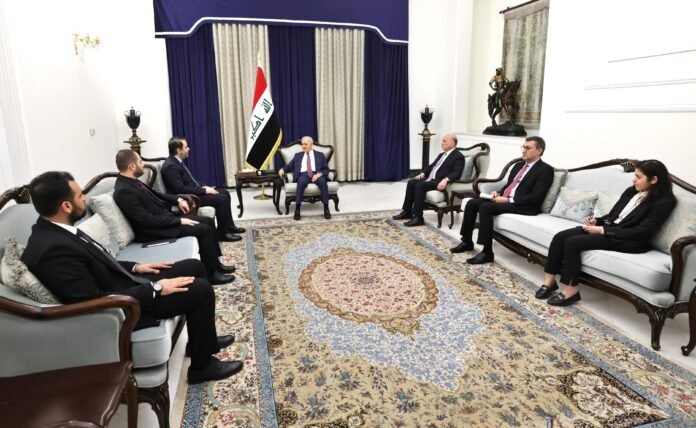 وقال المكتب الإعلامي لرئيس الجمهورية في بيان تابعته منصة “إيشان”، إن “رئيس الجمهورية عبد اللطيف رشيد استقبل، في قصر السلام ببغداد، وزير الخارجية السوري أسعد الشيباني، بحضور نائب رئيس مجلس الوزراء وزير الخارجية فؤاد حسين”.