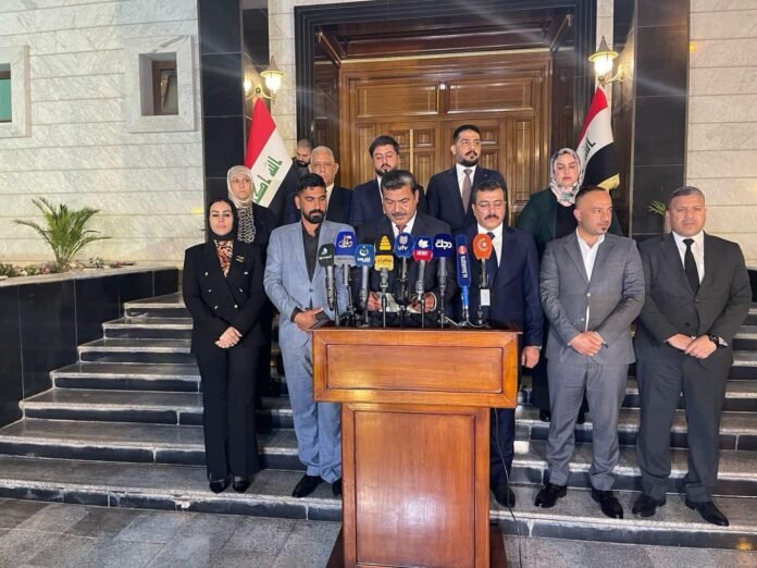 وقال المصدر في حديث لـ “إيشان”، إن “زعماء تحالف السيادة خميس الخنجر والعزم مثنى السامرائي والحسم ثابت العباسي اتفقوا على تشكيل كتلة باسم (كتلة بغداد) تتكون من 11 عضواً”.