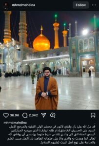 ونشر محمد مهدي نجل سيد المقاومة، صورة على حسابه في “انستغرام”، من إيران مرتدياً زياً حوزوياً.