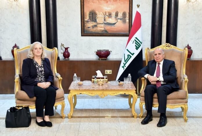 أبلغ وزير الخارجية، فؤاد حسين، السفيرة الأمريكيَّة لدى العراق آلينا رومانوسكي، عن رفضه للتصعيد الأخير في البلاد بعد القصف الامريكي للحشد الشعبي في جرف الصخر شمالي بابل فجر الاربعاء وأسفر عن شهداء وجرحى.
