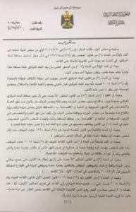 وكان مجلس النواب قد ارسل كتابا الى مجلس القضاء الاعلى يستفسر فيه عن رأي القضاء بشأن جواز استمرار محافظ البنك في الخدمة بعد بلوغه السن القانونية للإحالة على التقاعد.