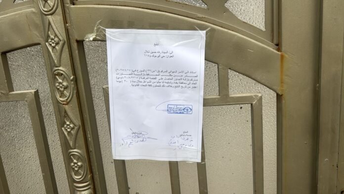وبموجب الإنذار الصادر، منحت المحافظة رفاه الزوبعي مهلة لا تتجاوز 30 يومًا لإخلاء العقار وإعادته إلى ملك الدولة، محذرةً من اتخاذ الإجراءات القانونية اللازمة بحقها في حال عدم الالتزام بالمدة المحددة.
