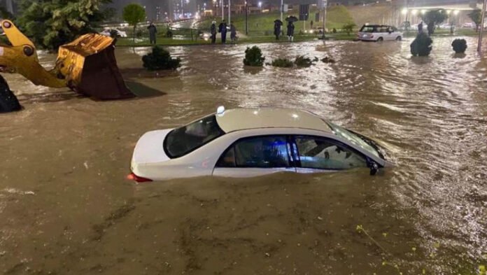 وغرق مجموعة من السيارات جراء سيول الأمطار الغزيرة التي غمرت جسر سيداوه وسط مدينة أربيل قرب القلعة الاثرية، بعد ان اجتاحت المياه شوارع المدينة.