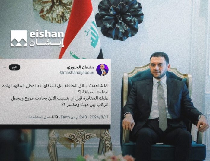 وكتب الجبوري على حسابه في منصة “x”، “اذا شاهدت سائق الحافلة التي تستقلها قد أعطى المقود لولده ليعلمه السياقة، عليك المغادرة قبل ان يتسبب الابن بحادث مروع ويجعل الركاب بين ميت ومكسر”.