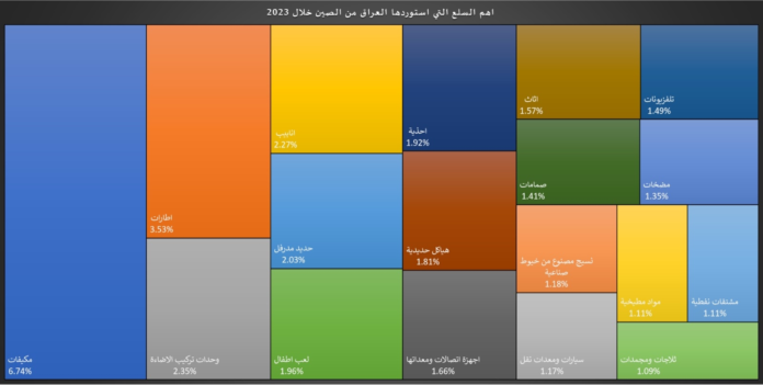 وكانت صادرات الصين الى العراق قد بلغت وفقاً للعبيدي “13.5 مليار دولار في السنة الماضية مما يعني ارتفاعا طفيفا بقيمة الصادرات الصينية الى العراق”.