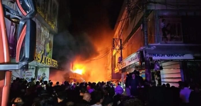 اندلع حريق كبير فجر اليوم الاثنين، بأحد أسواق مدينة دهوك، مما أدى إلى احتراق عشرات المحلات وإصابة 4 أشخاص.